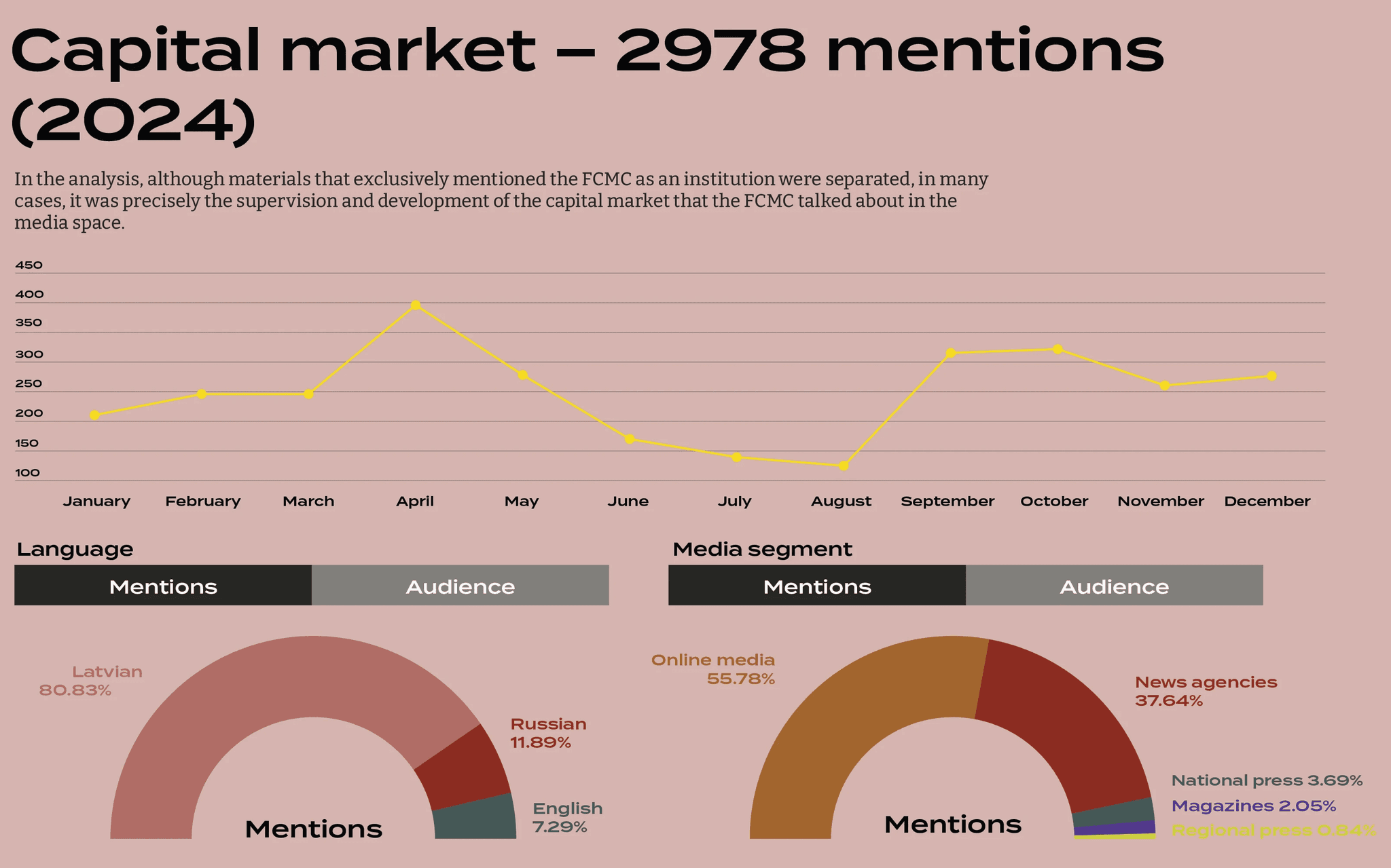 In the analysis, although materials that exclusively mentioned the FCMC as an institution were separated, in many cases, it was precisely the supervision and development of the capital market that the FCMC talked about in the media space.
