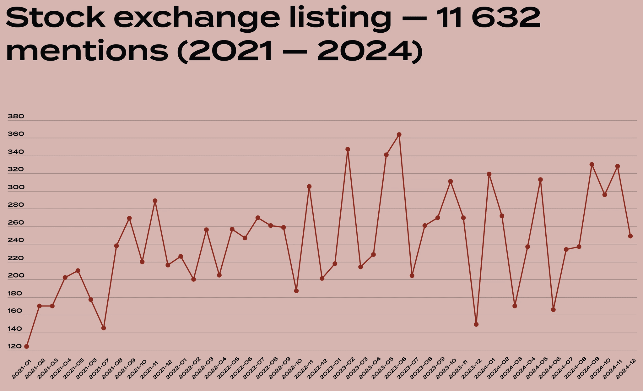 Accordingly, as a topic, a stock exchange listing was mentioned in 11 632 media materials, of which 3135 mentions were in 2024.