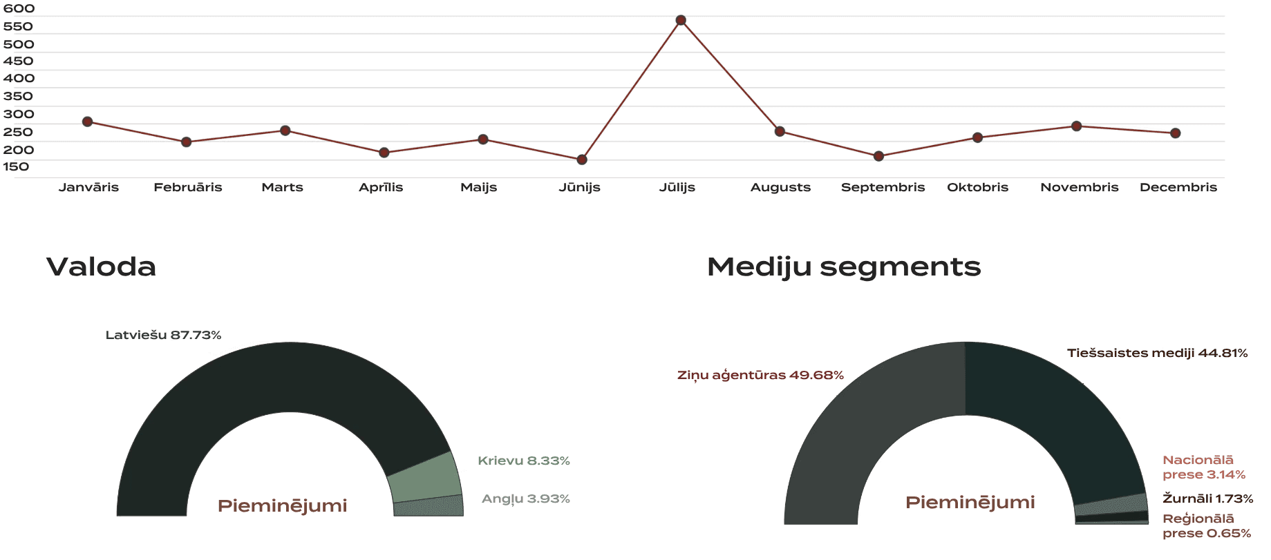 Šajā blokā vērts ielūkoties dziļāk – kapitāla tirgus plašākā nozīmē. Tas 2025. gadā dažādos veidos Latvijas medijos pieminēts 2 900 reižu. Šī tematika pārsvarā parādās uzņēmumu finansējuma piesaistes un investoru aktivitātes kontekstā. Politiskās diskusijas par kapitāla tirgu veido salīdzinoši nelielu, bet redzamu daļu publikāciju, un tās galvenokārt saistītas ar kapitāla tirgus attīstības politiku un valsts uzņēmumu iespējamo iesaisti biržā.