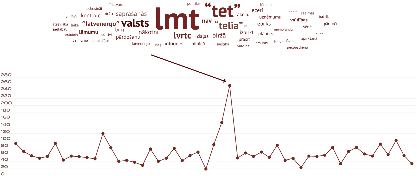 Šo bloku 2025. gadā veido 3 408 pieminējumi. Kotācija biržā medijos ir divslāņaina tēma: vienlaikus politikas diskusija par valsts uzņēmumiem un praktiska uzņēmumu kotēšanas/investoru piesaistes tēma. Atšķirībā no IPO šeit politiskais komponents ir daudz izteiktāks un strukturē visu naratīvu.
